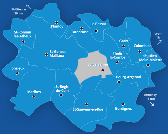 La commune de La Versanne se situe en région Auvergne Rhone Alpes, au Sud du département de La Loire, dans le Parc Naturel Régional du Pilat. Elle est membre de La Communauté de Communes des Monts du Pilat qui regroupe 16 municipalités des anciens cantons de Bourg-Argental et Saint-Genest Malifaux.