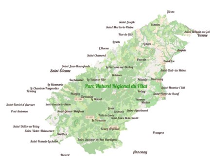 Le Parc du Pilat est un syndicat mixte qui regroupe 48 communes, 17 villes-portes, 2 départements et 1 Région (AURA), sous le contrôle de l’Etat qui valide ses projets politiques via une charte qui doit être renouvelée pour la période 2026 à 2041.